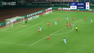 第12分钟,大连英博右路横传危险区域 内,闫鹏直接射球 击中左侧立柱↓