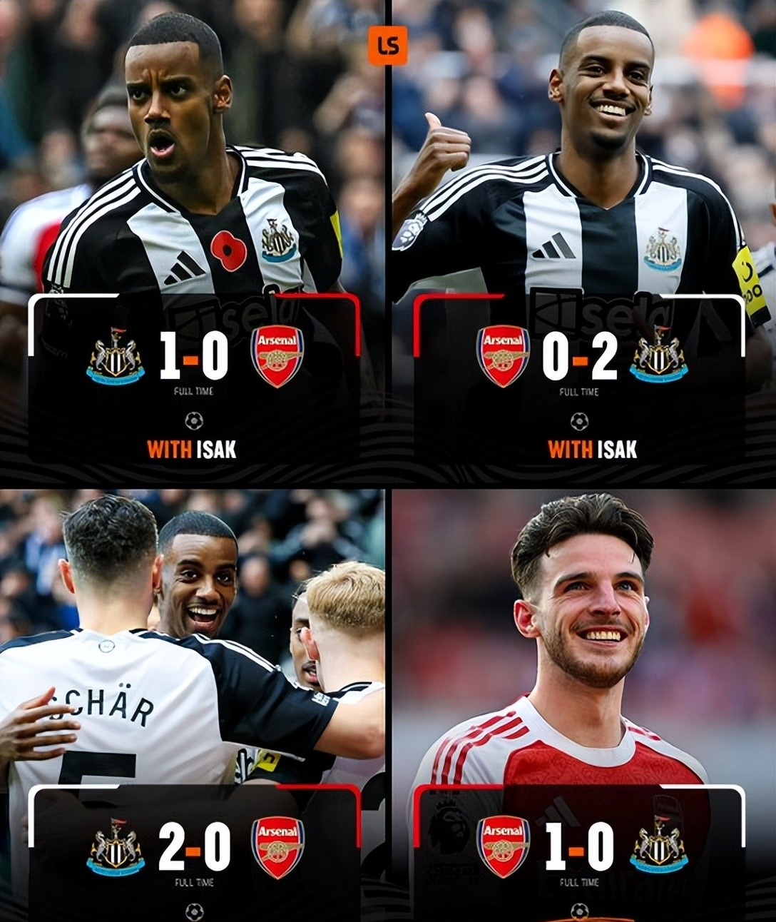 来自于LiveScore的统计显示,纽卡上赛季之所以能3胜阿森纳,或许不得忽略的因素就是在于伊萨克的存在。毕竟,阿森纳主场作战 1-0取胜纽卡的赛事 中,伊萨克并未赛事 。