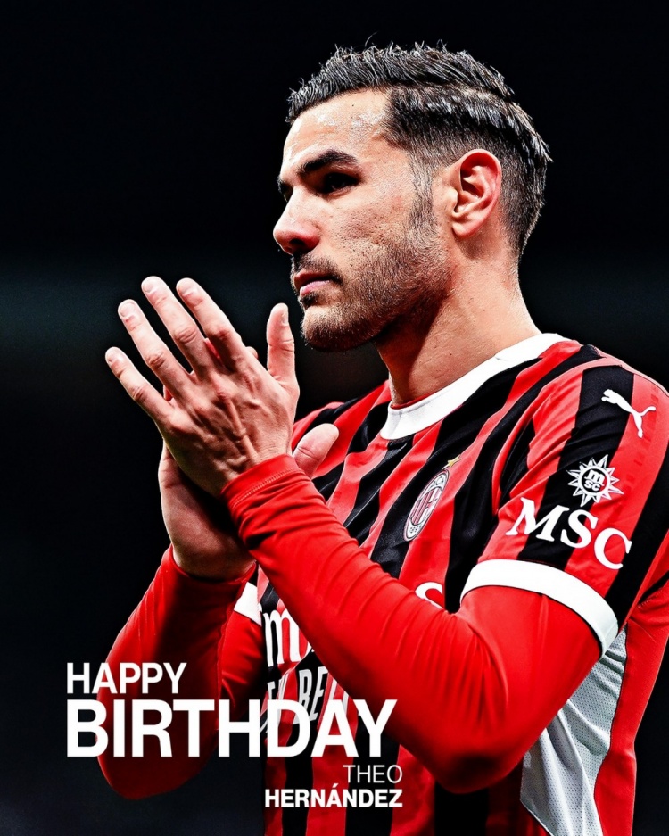 米兰俱乐部官方社媒晒出特奥的生日海报,配文:“生日快乐,特奥!”
