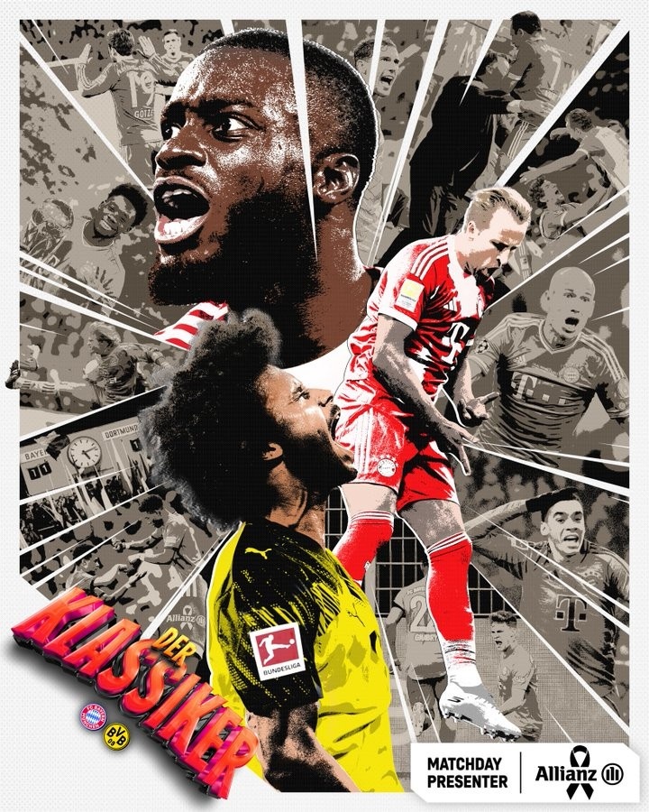 德国国家德比!拜仁晒战多特预热海报:拼贴画风格!于帕凯恩出镜