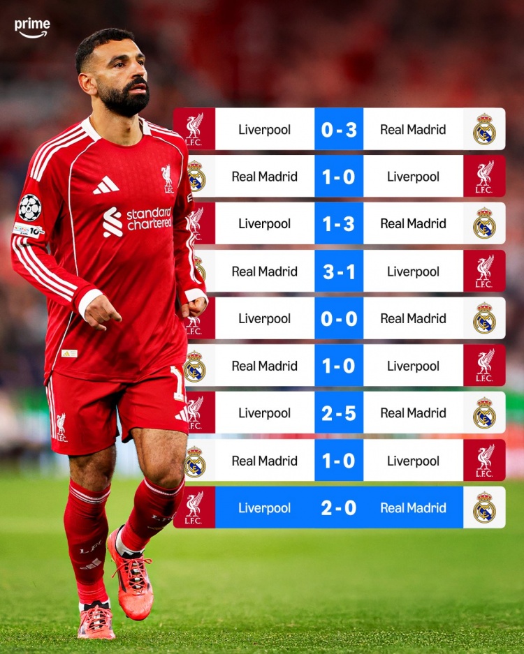 这次如何?利物浦近9次对阵皇马1胜1平7负,打进6球丢17球