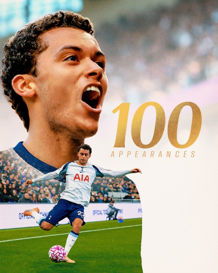 布伦南-约翰逊达成热刺百场里程碑,俱乐部社媒晒海报祝贺