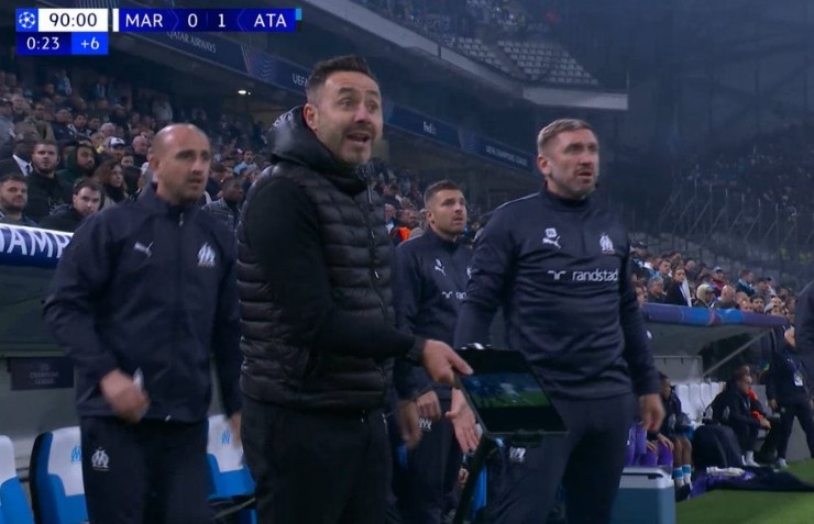 马赛主帅德泽尔比手拿IPAD愤怒的向裁判 表示对手在得分 前手球运动 违例 ,欧洲杯直播但是裁判 依然认定得分 有效。