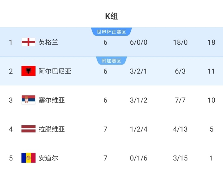 世预赛积分榜↓